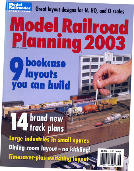 I was pleased that my design was chosen as one of the entries for a bookcase layout design challenge, with the nine selected designs showcased in Model Railroad Planning 2003.