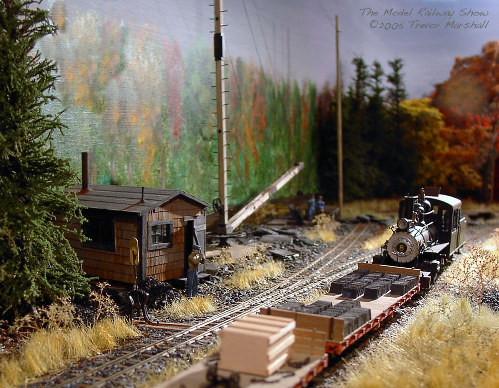 I learned to install DCC and sound. I added interiors to passenger cars and cabooses. I scratch-built structures with working windows and doors, real glass in the windows, and interior lighting. I scratch-built flat cars, slate loads (including individual roofing slates), crates, and slate processing machinery. I pounded my own ballast out of slate flooring tiles. I learned to paint backdrops, and create convincing scenery. I framed each section with an integrated fascia/valance, like a shadowbox, and explored the use of layout lighting to provide a strong sense of sunlight and shadow. And I embraced finescale operations – adding proper railroad paperwork, switch locks, and other tools to slow down the operations and maximize the play value of operating sessions.