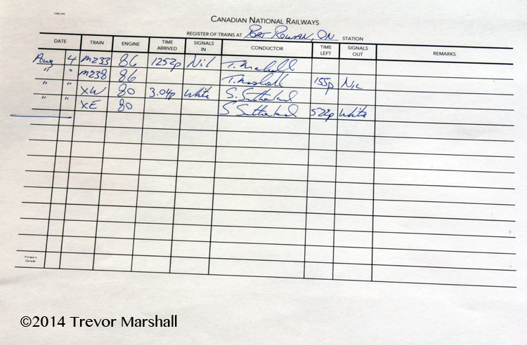 Why was a register needed? Well – let’s say you’re running a freight extra. You’ve worked your way to Port Rowan and now you’re ready to head back. It’s 1:15 pm: Are you clear to go?
