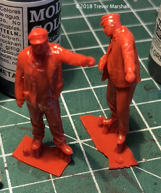 I gave them a good scrub with rubbing alcohol on a tooth brush, followed by soap, then primed them and painted them using techniques I’ve been practising for wargaming figures. I’m enjoying exploring the use of washes and shading products that aren’t normally associated with railway modelling and will do more of this on future projects.