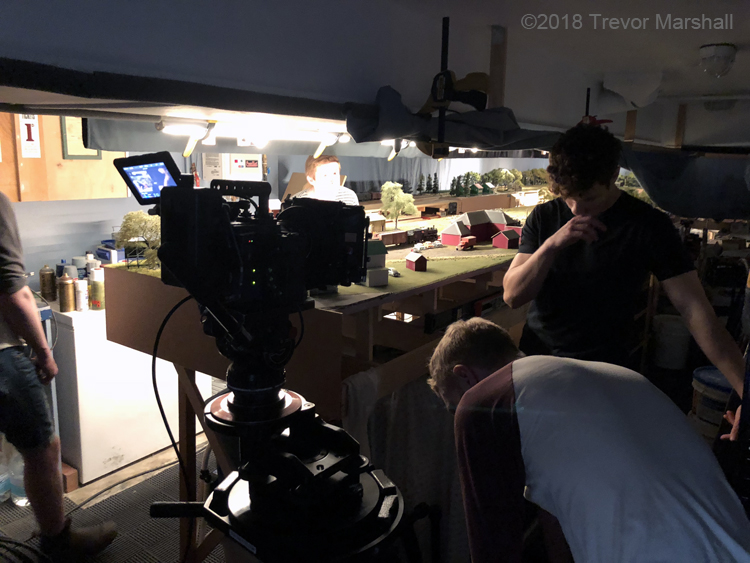 Joy and her producer Lucas Ford appreciated the time, effort and money that I’ve invested in my hobby, and they were terrific about making sure I felt comfortable having a film crew of approximately 20 people in the layout room and workshop for the day. For my part, I was thrilled to be able to take part: I studied television in university and while many of the details differ between TV and film, there were enough similarities that I appreciated what was going on (and knew when to shut the heck up), even as it reminded me of what I’m missing as someone who abandoned a career in media and who now works largely by himself.