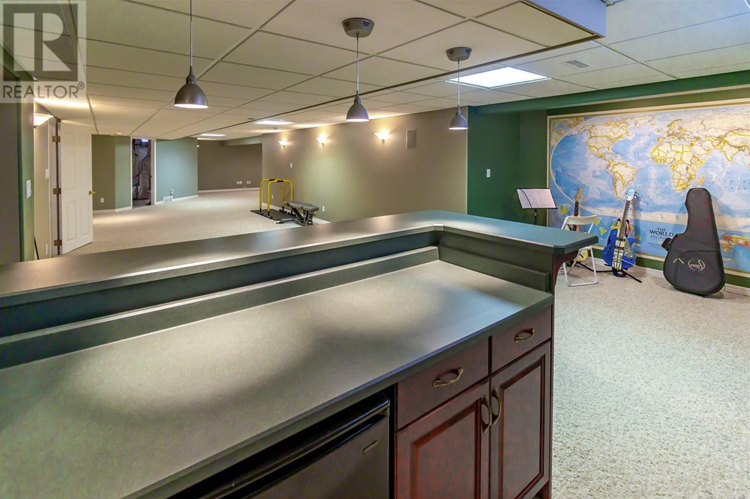 As you can see, it’s a nicely finished space. It’s also larger than my previous space, by about 50%. (The exercise equipment, musical instruments, and mirror are not mine and are all gone.)