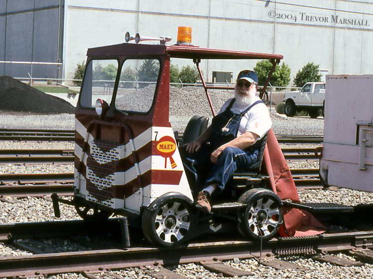 I called the METRR 70 Tonners “old friends” and with good reason. I’ve met them before – on a trip to California to attend the Pacific Coast Region NMRA convention in 2004. A group of us including Bill Kaufman, Jim Providenza, and Bill Schaumburg met up with Mike McReynolds – a retired METRR employee and goodwill ambassador – for a tour of the line. Here are some pictures I took of the 70 Tonners in their glory days: