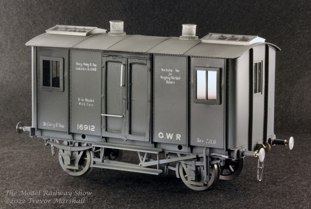 The GWR had scales across its system, and employed a small fleet of Pooley vans as specialized workshops on wheels to maintain those important devices. The prototype info that came with this Walsall Model Industries kit notes seven Pooleys (Diagram CC2), built between February 1893 and July 1906.