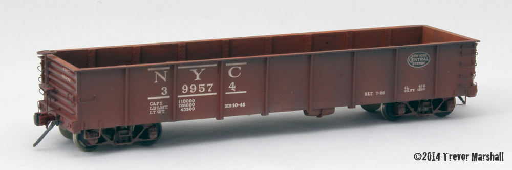 This is a resin kit from Funaro and Camerlengo. The company is better known for its HO scale resin kits, particularly of New England prototypes, but it also offers a couple of cars in 1:64 as well. I wish it would do more, as there are some interesting prototypes in the company’s catalogue. Pierre Oliver built this kit for me, while I did the weathering. I’m really pleased with the rusty interior, achieved with weathering powders.