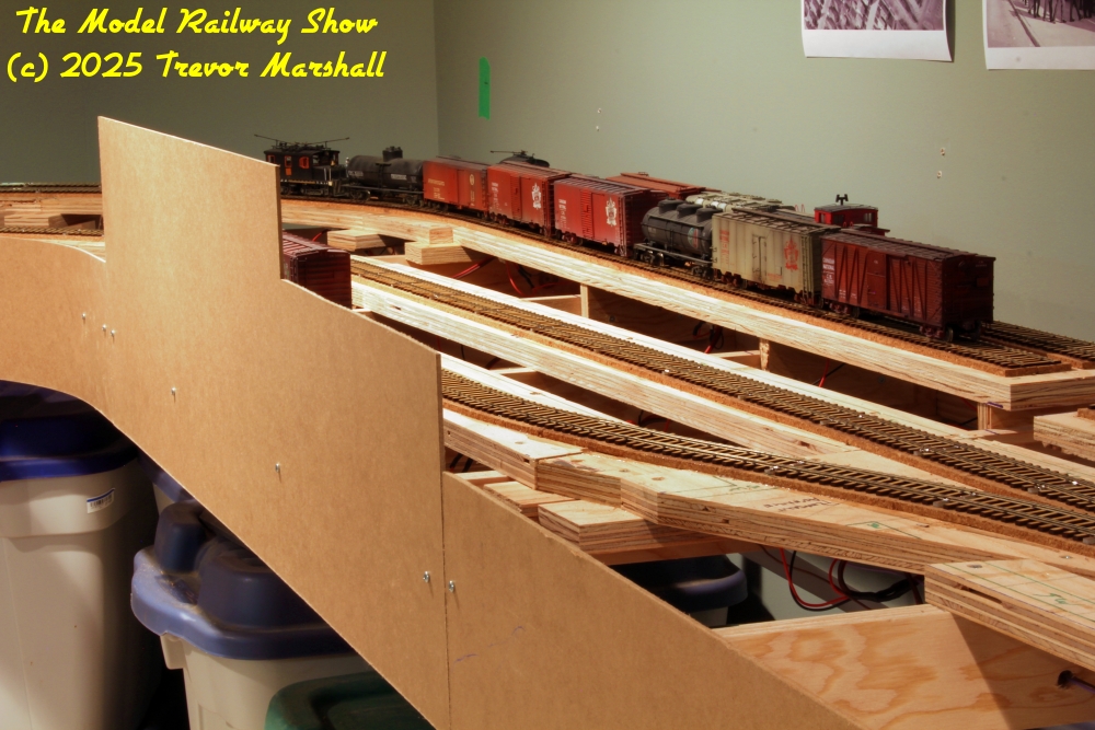 This helps frame the scene, softens the corners, prepares the foreground for the installation of terrain (to fill the gaps between sections of roadbed), and provides a surface on which to mount various controls.