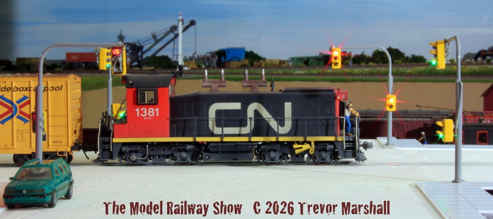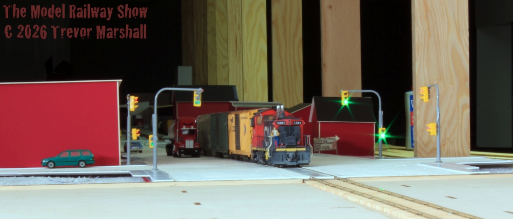 I’ve installed working traffic lights at the intersection of Pine Street and Sullivan Avenue on CNR Pine Street – my HO scale portable layout.