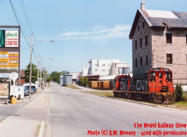 Twice per week, the CNR would run a few blocks up the middle of Pine Street in Thorold to serve a paper mill in a scene that seemed designed by model railway enthusiasts: